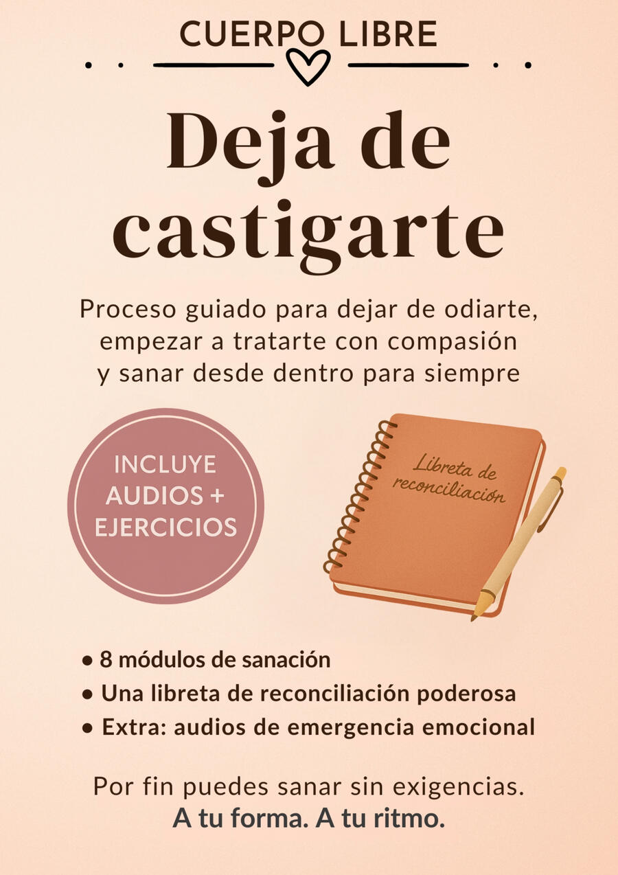 El problema era cómo me habían enseñado a tratarlo.Por eso escribí este libro: para ayudarte a romper con ese ciclo y empezar de nuevo.Con amor, sin culpa, y desde la empatía.— Cuerpo Libre 💚